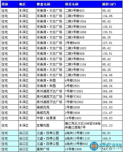根據海西地產投資網研究中心分析得出,2011年10月9日泉州住宅成交26套,其中豐澤22套、洛江4套;泉州商業成交7套,其中鯉城成交1,豐澤成交2套,洛江成交4套。
