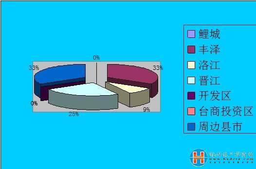 在泉州各區(qū)有投放廣告的樓盤中,其中豐澤區(qū)和周邊縣市均有4個(gè)樓盤投放廣告,并列第一;晉江市共有3個(gè)樓盤投放廣告,位居第二;