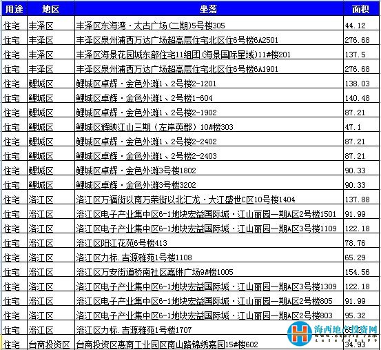 根據海西地產投資網研究中心分析得出,2012年4月20日泉州住宅成交24套,其中鯉城8套,豐澤4套,洛江10套,臺商區2套;泉州商業成交14套,其中鯉城成交14套。