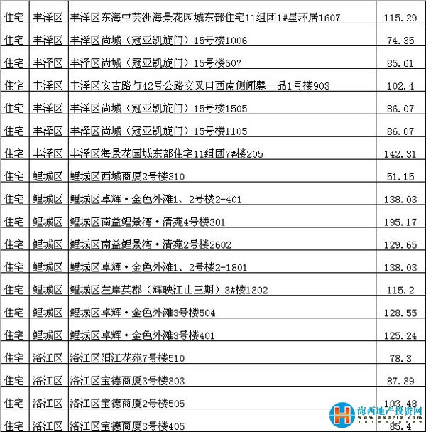 根據海西地產投資網研究中心分析得出,2012年7月01日泉州住宅成交45套,其中豐澤成交25套,鯉城成交8套,洛江成交10套,臺商區成交2套;泉州商業成交6套,其中豐澤成交2套,洛江成交3套,臺商區成交1套。