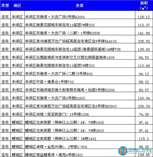 根據海西地產投資網研究中心分析得出,2012年7月06日泉州住宅成交36套,其中豐澤成交13套,鯉城成交7套,洛江成交16套;泉州商業成交4套,其中豐澤成交3套,鯉城成交1套。