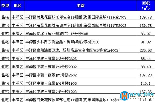 根據海西地產投資網研究中心分析得出,2012年7月13日泉州住宅成交25套,其中豐澤成交11套,鯉城成交5套,洛江成交9套;泉州商業成交13套,其中豐澤成交3套,洛江成交10套。