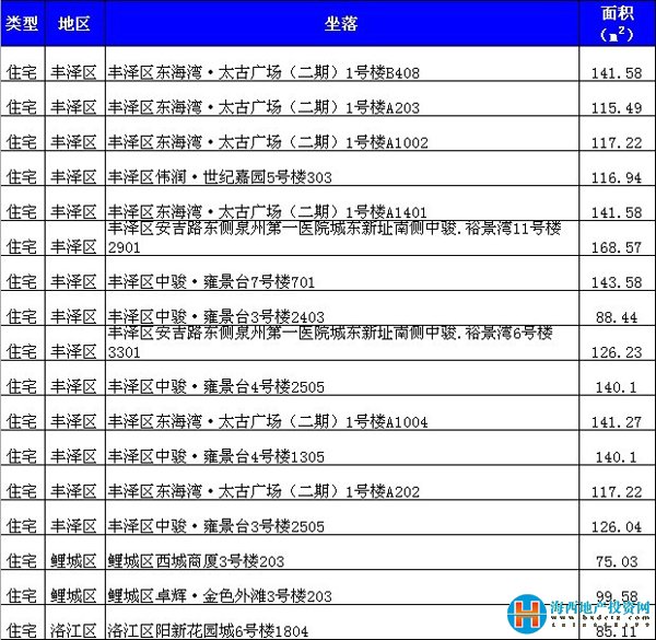 根據(jù)海西地產(chǎn)投資網(wǎng)研究中心分析得出,2012年7月25日泉州住宅成交26套,其中豐澤成交14套,鯉城成交2套,洛江成交5套,臺(tái)商投資區(qū)成交5套;泉州商業(yè)成交15套,其中豐澤成交4套,洛江區(qū)成交11套。
