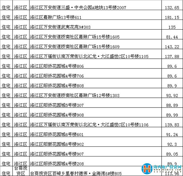 根據海西地產投資網研究中心分析得出,2012年8月06日泉州住宅成交35套,其中豐澤成交11套,鯉城成交6套,洛江成交17套,臺商區成交1套;泉州商業成交6套,其中豐澤成交4套,鯉城成交1套,洛江成交1套。