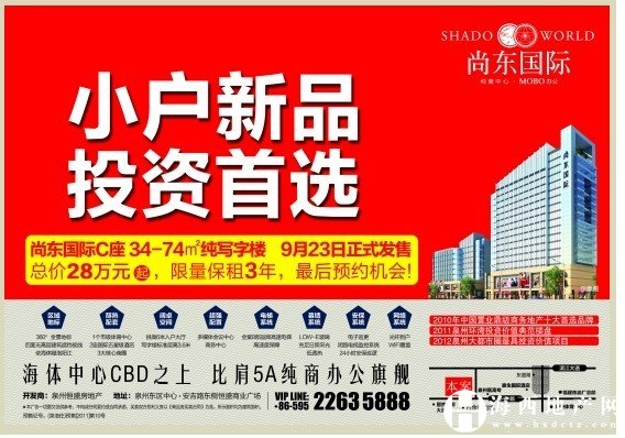 (海西地產(chǎn)網(wǎng)9月18日報道)尚東國際項目其C座34-74純寫字樓將于9月23日(周日)正式發(fā)售,總價28萬起,限量保租3年,最后預(yù)約機會!