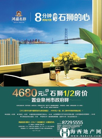 (海西地產(chǎn)網(wǎng)12月12日報道)鴻盛名邸項目4680元起,僅石獅一半的房價即可置業(yè)泉州市政府畔,8分鐘跨海大橋動了石獅的心。
