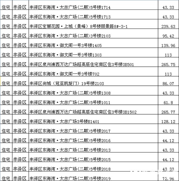 根據海西地產網研究中心分析得出,2013年01月05日泉州住宅成交73套,其中豐澤成交42套,鯉城區5套,洛江區成交17套,臺商區9套;泉州商業成交15套,其中豐澤成交14套,洛江區成交1套。