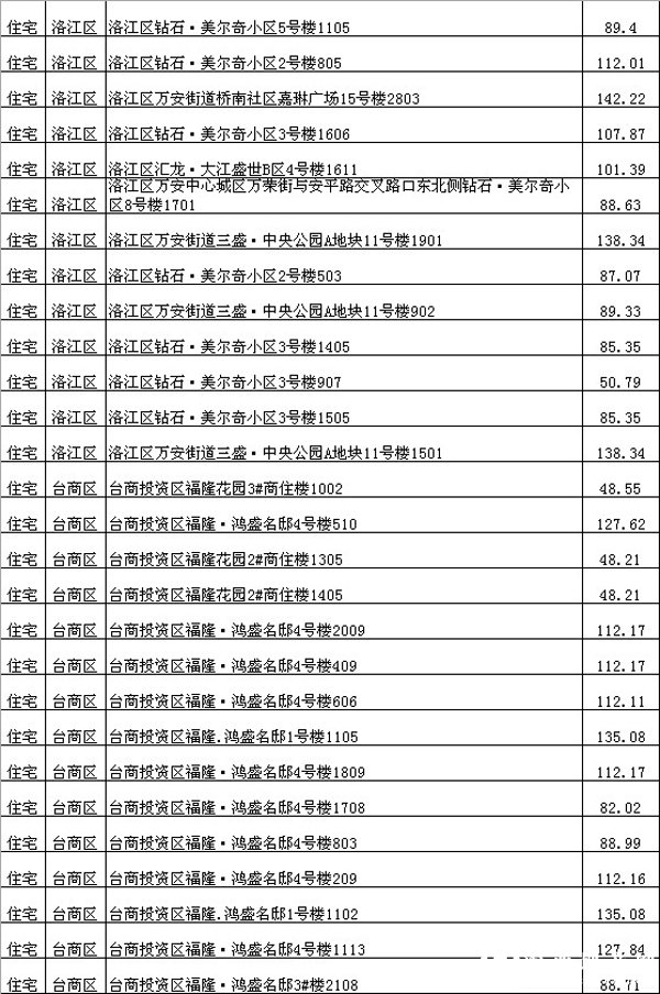 根據海西地產網研究中心分析得出,2013年03月09日泉州住宅成交79套,其中豐澤區成交44套,鯉城區成交4套,洛江區成交16套,臺商區成交15套;泉州商業成交10套,其中豐澤區成交3套,洛江區成交7套。