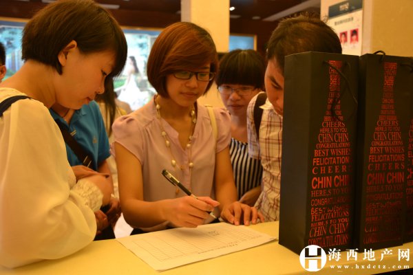 下午3點開始,收到邀請函和獎券的客戶陸續來到接待中心集中,簽到。本次抽獎活動共抽出25份禮品,一等獎1名,獎品為Ipad mini;二等獎2名,獎品為現金紅包1000元;三等獎3名,獎品為IPOD nano;幸運獎19名,獎品為價值568元法國原裝進口葡萄酒。