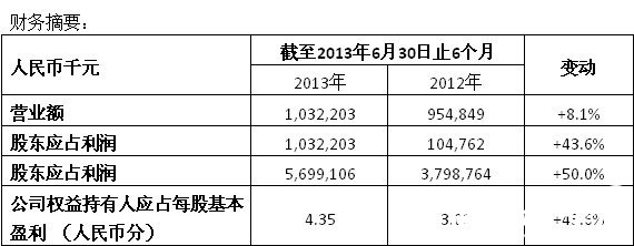 營(yíng)業(yè)額和股東應(yīng)占利潤(rùn)分別同比上升8.1%和43.6%