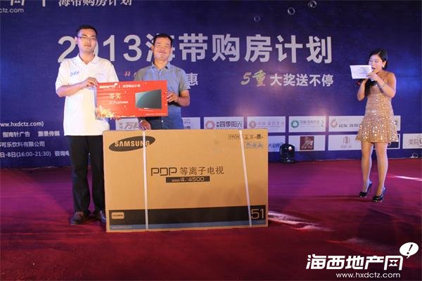 活動結束后,本網記者采訪獲得一等獎50寸液晶電視的晏先生,晏先生說:自己下定的是中駿·藍灣半島148㎡三房房子,很是喜歡,看好周邊的配套。起初自己對于中獎并未報希望,剛準備帶著愛妻回家,就聽到主持人在喊自己的名字,太驚喜了!還很感謝本網這次2013海帶購房計劃活動,不僅買到自己心儀的房子,還抱得了大獎。也真誠的祝福海西地產網越辦越好!