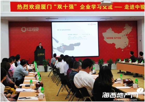 2013年10月25日下午,廈門市制造業、服務業“雙十強”企業學習交流——走進中駿集團如期舉行。中駿集團董事局主席黃朝陽先生帶領集團各公司高管熱情接待了前來交流的領導和嘉賓。