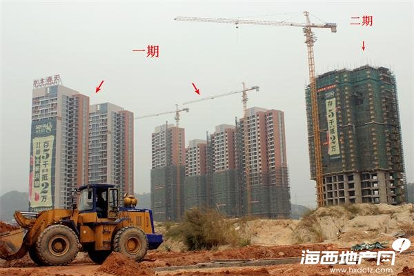 二期項目工地B1#樓建至約23層,B2#樓建至約22層