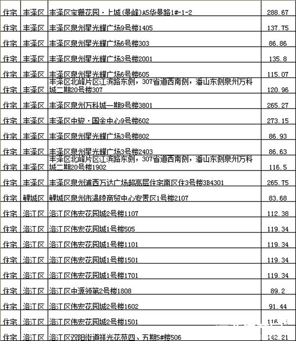 根據海西地產網研究中心分析得出,2014年10月13日泉州住宅成交51套,其中豐澤區成交32套,鯉城區成交1套,洛江區成交13套,臺商區成交5套;泉州商業成交36套,其中豐澤區成交27套,鯉城區成交5套,洛江區成交3套,臺商區成交1套。