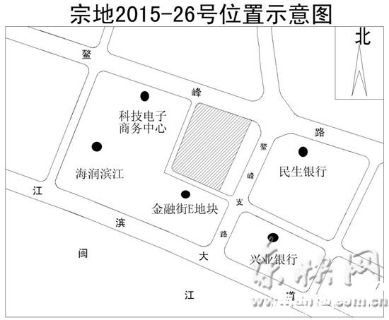 2015-26號地塊位于臺江區江濱大道以北,鰲峰路南側,海峽金融商務區B地塊,土地面積31902平方米(合47.85畝),為商服(商務辦公)用地。規劃指標要求,該地塊所建項目容積率為2.0以上,2.9以下(含2.9),商服用地40年。起始價為64400萬元。
