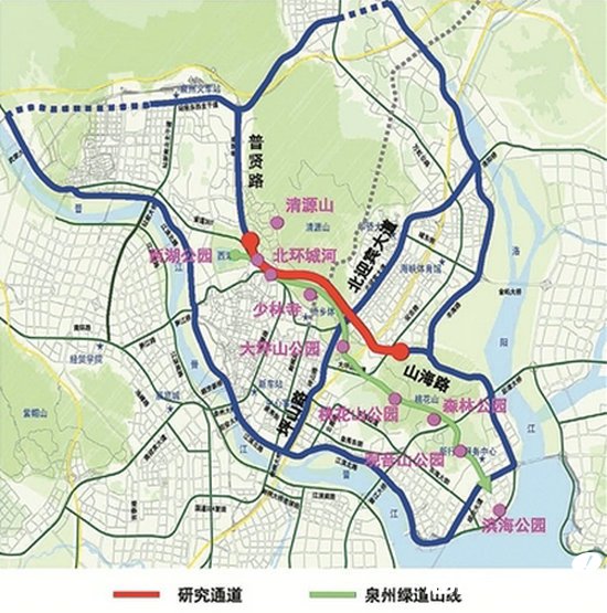 北峰城東快捷通道總長(zhǎng)7.2公里,起于城東南環(huán)路,設(shè)高架連續(xù)上跨安吉路、沈海高速路至324國(guó)道;在324國(guó)道設(shè)置互通立交后,經(jīng)市烈士陵園北側(cè),設(shè)隧道穿古塔山,至第四監(jiān)獄北側(cè)設(shè)互通接刺桐北路;過(guò)刺桐北路后,主線由第四監(jiān)獄東北側(cè)設(shè)隧道穿五臺(tái)尾山,接至普賢路。根據(jù)初步設(shè)計(jì)方案,設(shè)計(jì)速度60公里/小時(shí),主線雙向6車道,預(yù)計(jì)總投資10億元。