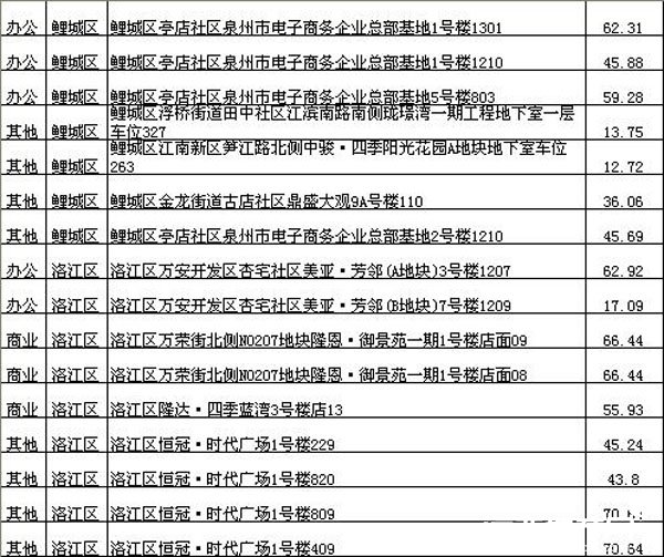 。▊渥ⅲ航y(tǒng)計(jì)泉州市區(qū)為鯉城、豐澤、洛江、開(kāi)發(fā)區(qū)、臺(tái)商區(qū)五區(qū);商業(yè)分為商鋪、寫字樓、車位)