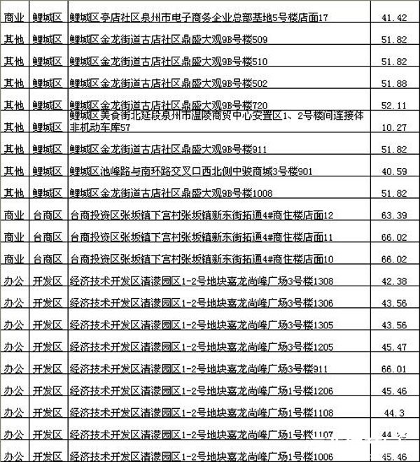 。▊渥ⅲ航y(tǒng)計泉州市區(qū)為鯉城、豐澤、洛江、開發(fā)區(qū)、臺商區(qū)五區(qū);商業(yè)分為商鋪、寫字樓、車位)