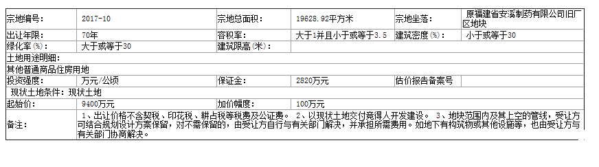 應按安溪縣住建局出具的安建〔2016〕305號規劃設計條件和城區工業園管委會出具的《關于原福建省安溪制藥有限公司舊廠區地塊建設要求及安置房的情況說明》進行開發建設,其中安置店面23間1029.73㎡、安置住宅28套3594.91㎡及安置辦公場所及辦公用房3733.93㎡,所有安置用房回購單價統一為2300元/㎡,且位置、朝向、套型、面積、結構和層高不得改變。此外,開發商應無償提供地下停車位8位用于安置給上山村委會。