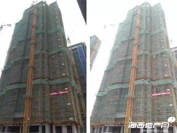 截止2019.10.12南安中駿柏景灣項目主體結構施工完成,砌體施工中,裝飾開始施工。