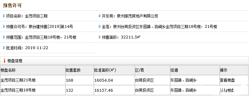 坐落于泉州臺商投資區(qū)東園鎮(zhèn)、百崎鄉(xiāng)金茂項(xiàng)目三期18號樓、21號樓共有282套住宅房源,價格區(qū)間11702.13-14276.74元/㎡,整體均價約13000.14元/㎡。