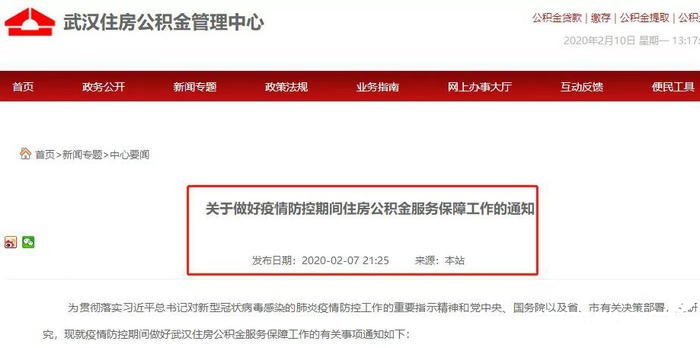 2月7日晚,武漢市住房公積金管理中心發布《關于做好疫情防控期間住房公積金服務保障工作的通知》!