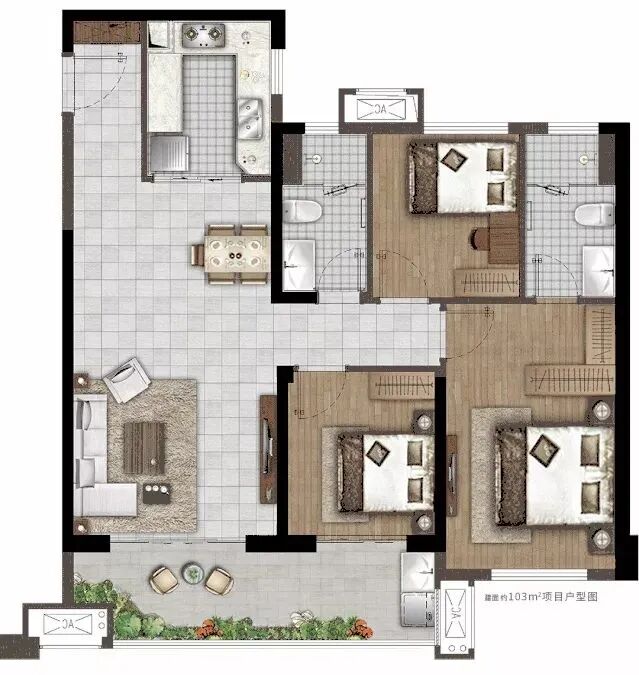 103㎡三房兩廳兩衛(wèi)