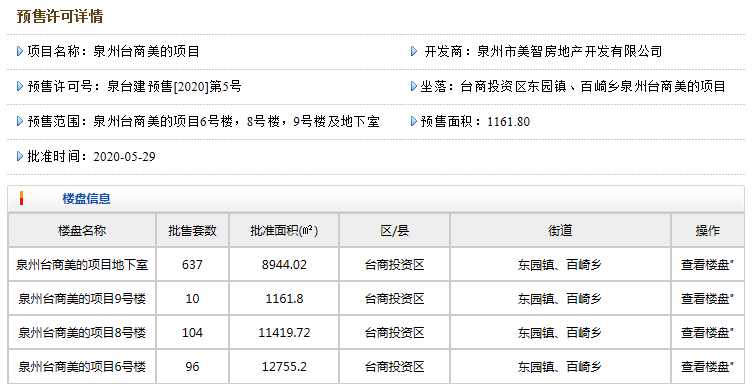 據(jù)泉州住建局官網(wǎng)顯示,臺商投資區(qū)——美的公園天下,6#、8#、9#及地下室獲批預(yù)售。