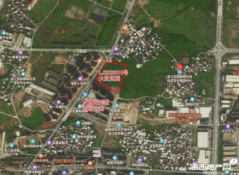 該地塊西鄰偉宏小米時代、陽光北路,南臨大唐陽光城翡麗公館、雙陽第二中心幼兒園、閩南師范大學洛江附屬小學等,其中大唐于2017年12月13日競得的大唐陽光城翡麗公館毛坯限價8300元/㎡。