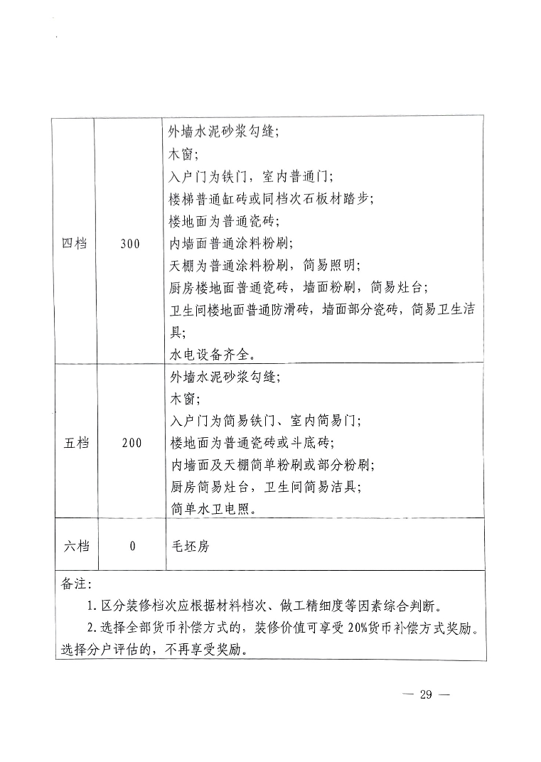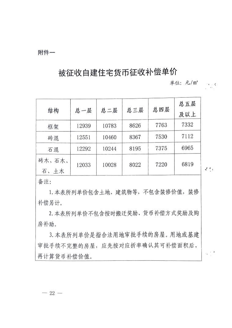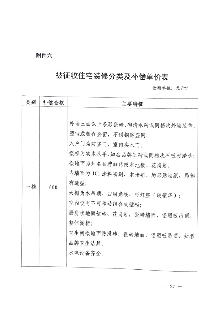 自建住宅相應補償單價按附件一計算,裝修補償單價按附件六計算。