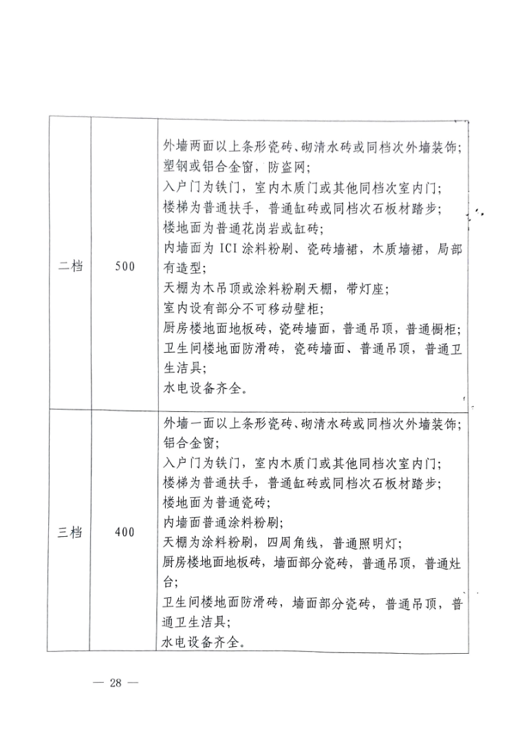 采取基準價格補償的,被征收房屋價值補償單價分類標準如下: