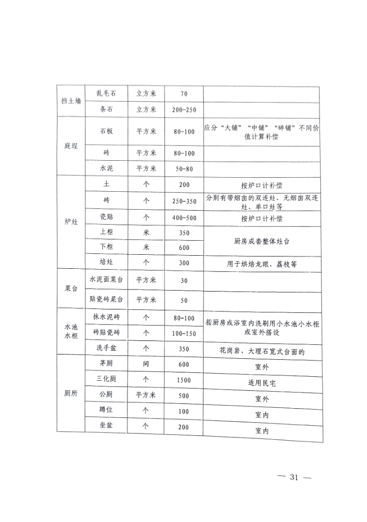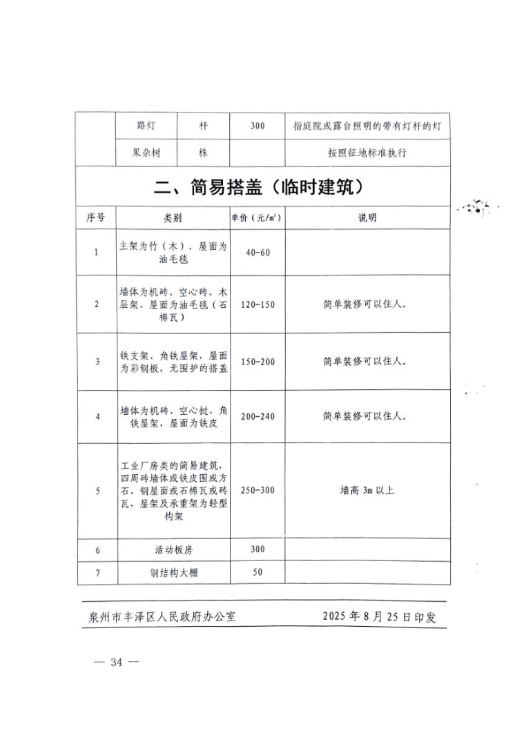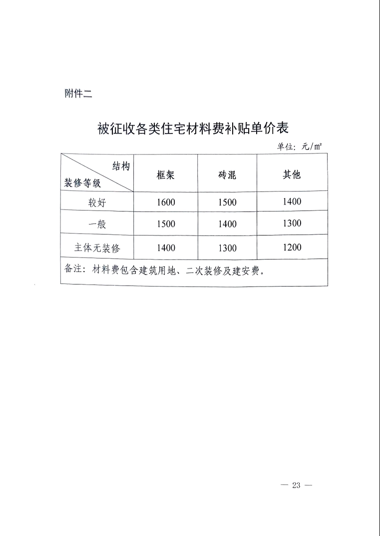 (4)2004年10月1日《泉州市人民政府關于禁止非法占地、違法建設的實施意見》(泉政文〔2004〕277號)實施后基建的房屋,按照市委辦、市政府辦《泉州市違法占地、違法建設認定及分類處置的指導意見》(泉委辦發〔2014〕16號)進行處置。其中,2004年10月1日至2008年版國土航拍圖前基建的房屋,給予材料費補貼(詳見附件二)。