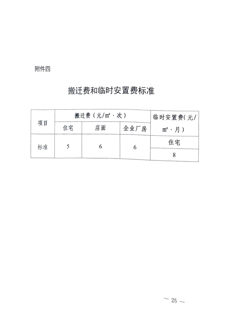 第五部分搬遷費、臨時安置費和停產停業補助費標準