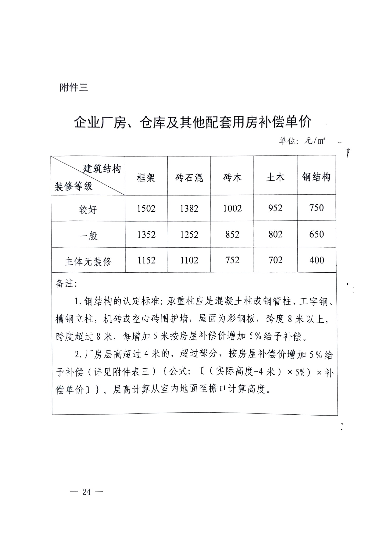 3.企業廠房、倉庫及其他配套用房。實行貨幣補償。