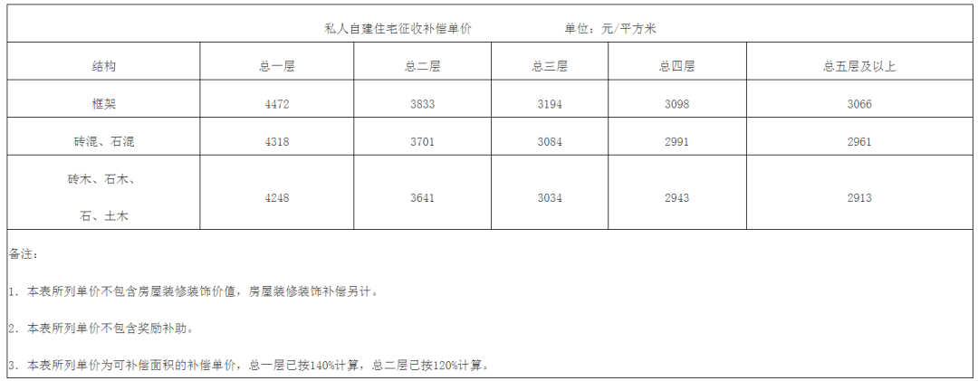 1.房屋補償:按原類型、結構標準參照私人自建住宅標準給予補償。