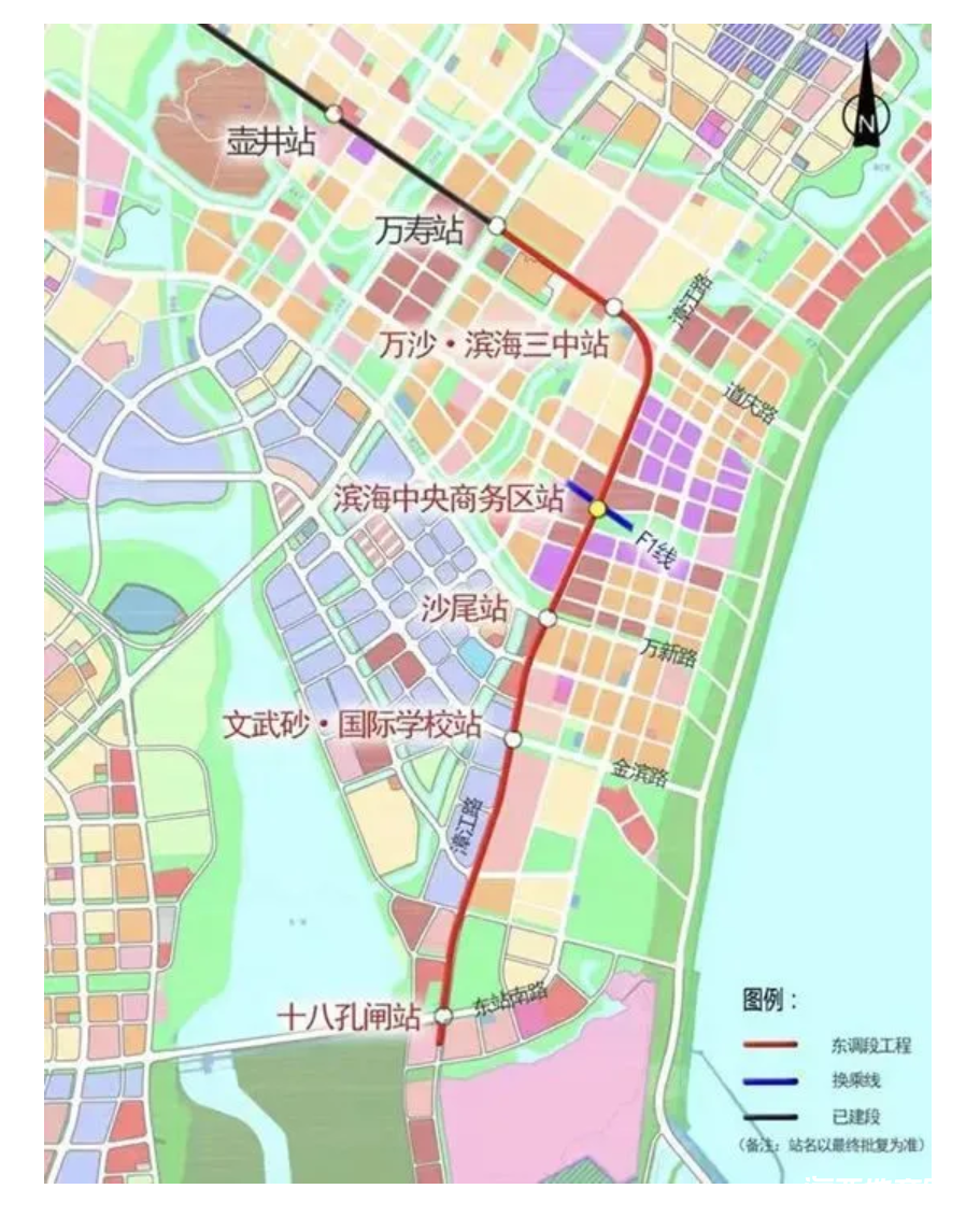 福州地鐵6號線東調段作為福州軌道交通線網的重要延伸,起始于6號線一期終點站萬壽站,終止于長樂濱海新城的十八孔閘站,線路單線全長約5.55千米,共設置5座車站,分別為萬沙·濱海三中站、濱海中央商務區站、沙尾站、文武砂·國際學校站、十八孔閘站。