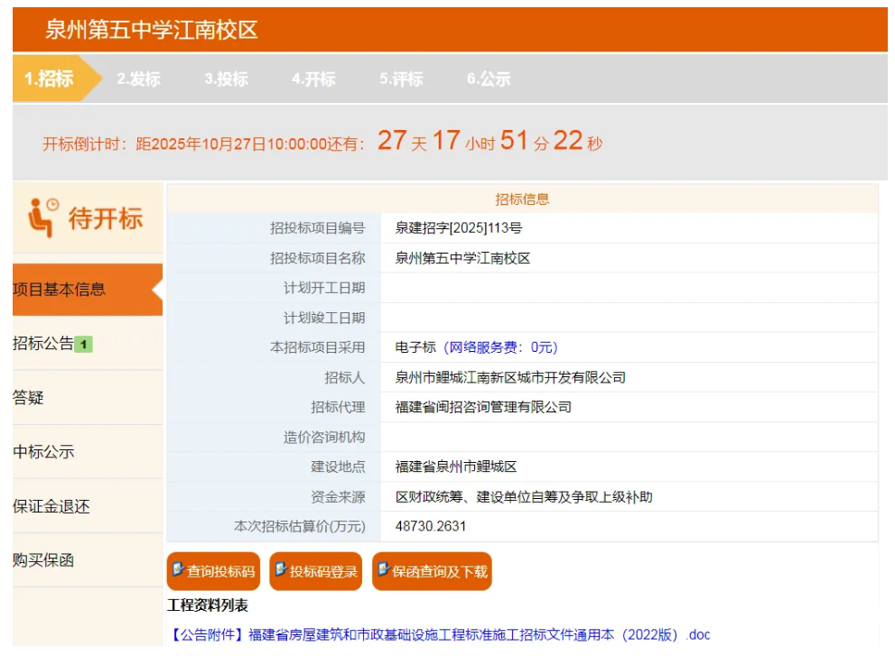 近日,泉州公共資源交易信息網發布《泉州第五中學江南校區施工總承包》招標。