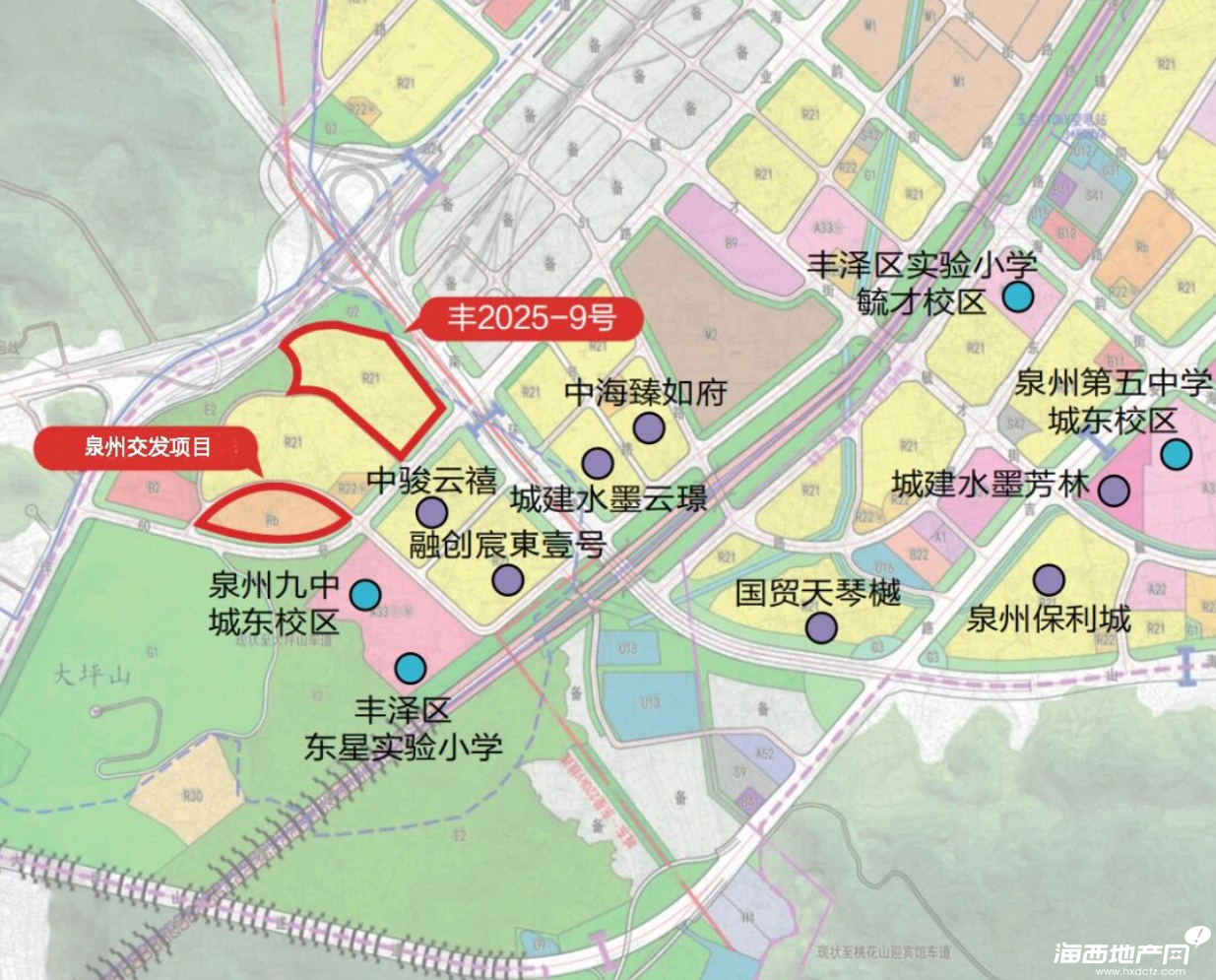7.豐2025-9號地塊東南側約300米已規劃在建泉州市第九中學城東校區,東南側約400米已建設泉州市豐澤區東星實驗小學。關于學區劃分事宜,需待當年度片區摸底生源數,并結合新建學校投用情況后確定,具體以當年度豐澤區的招生政策為準。