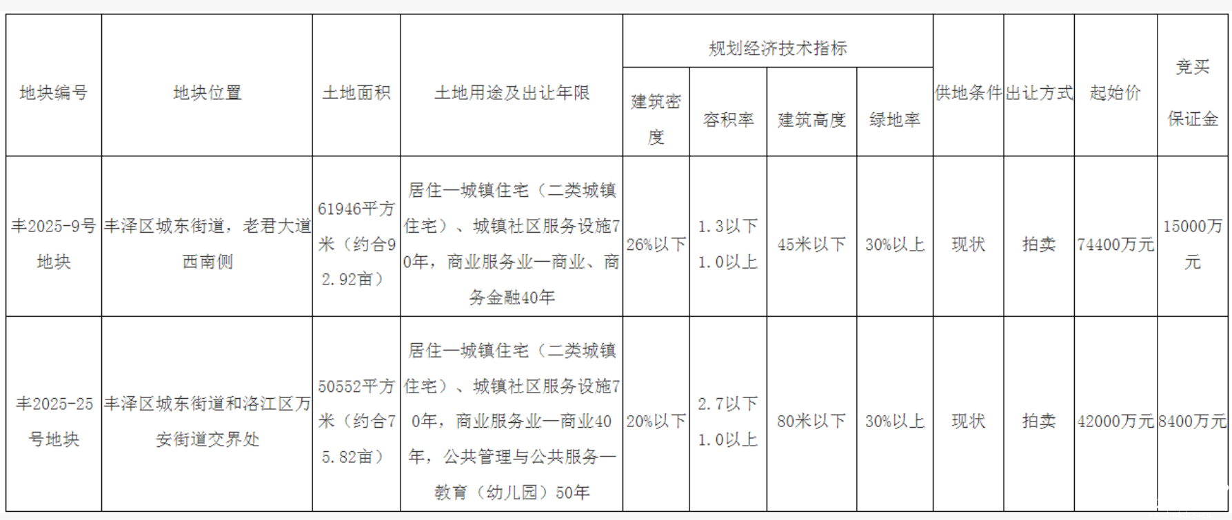 限價:豐2025-9號地塊不設住宅最高銷售限價,由競得企業根據市場情況自主定價,該項目商品房上市銷售時,應執行國家及地方房地產有關政策,接受相關主管部門的指導和監督