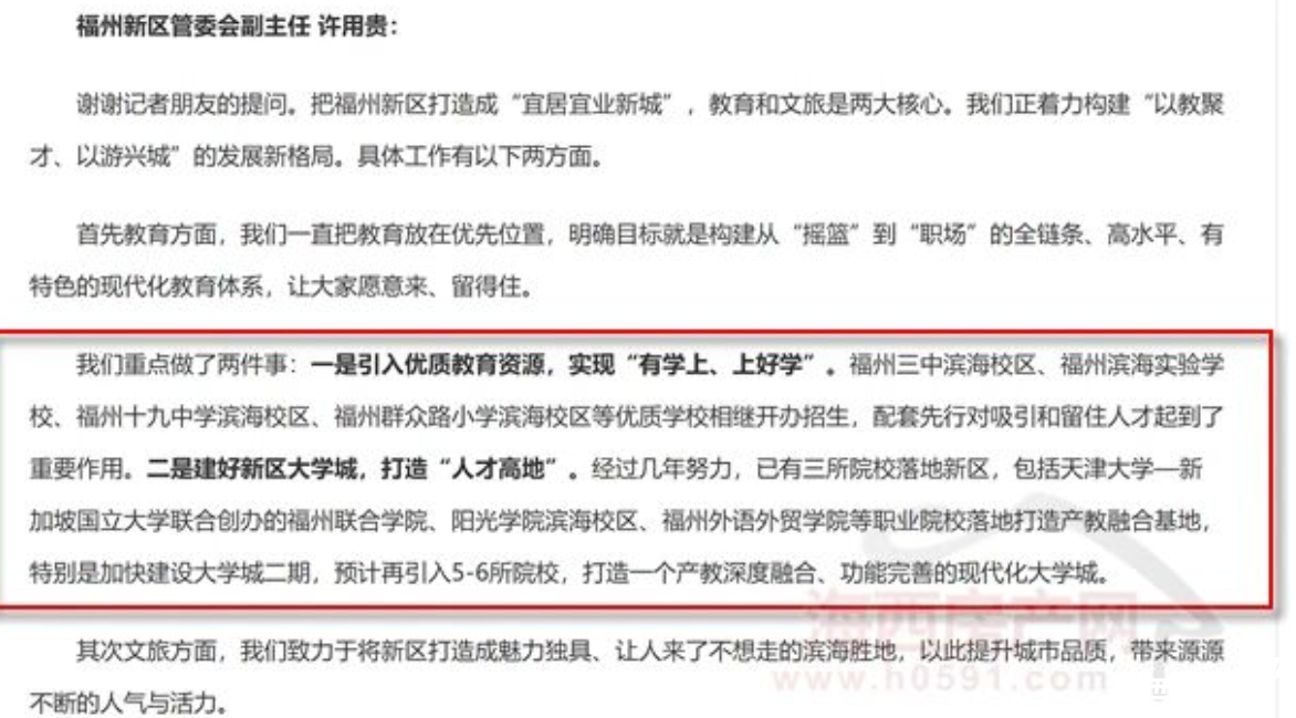 陳云水表示,新區依托職教城建設,集聚落地天津大學福州國際校區、福州外語外貿學院、陽光學院等優質院校,著力打造職業教育培訓和產教融合發展的新高地。