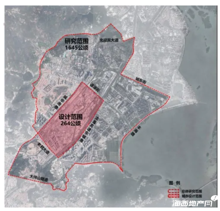 范圍東至豐海路,西北至清源山,北至北迎賓大道和城東街,南至大坪山隧道和老君大道,約1645公頃。