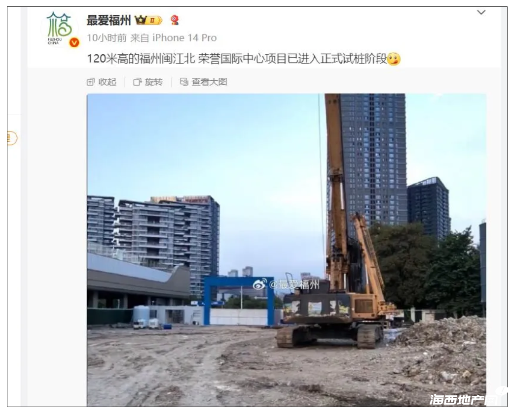 海西房產網(微信公眾號:fjhxfcw)消息:據知名微博主@最愛福州報道,位于閩江北CBD的榮譽國際中心項目,已正式試樁階段。
