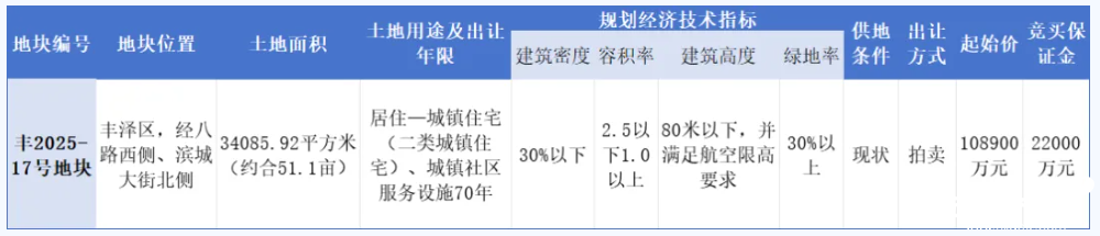 泉州市自然資源和規劃局關于豐2025-17號地塊國有建設用地使用權出讓公告(泉自然資告字〔2025〕15號)