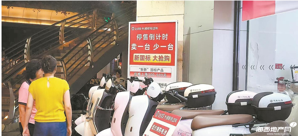 距離11月30日“舊國標車”最后銷售期限還有不到兩個月了,記者注意到,各品牌的“舊國標車”非但沒有“打折促銷”,反而許多門店都張貼上了“賣一輛少一輛”的宣傳海報。“最近陸續有消費者過來咨詢‘新國標車’,但暫時無人購買。”市區城西路某品牌電動自行車門店負責人李先生透露,目前店里在售的“舊國標車”都是庫存,9月后就進不到貨了。“舊款車型經過多年市場檢驗,價格和維修成本相對更低,特別是對那些孩子在古城上學的家長來說,上下學接送買‘舊國標車’會更實用一些,目前不愁賣。”