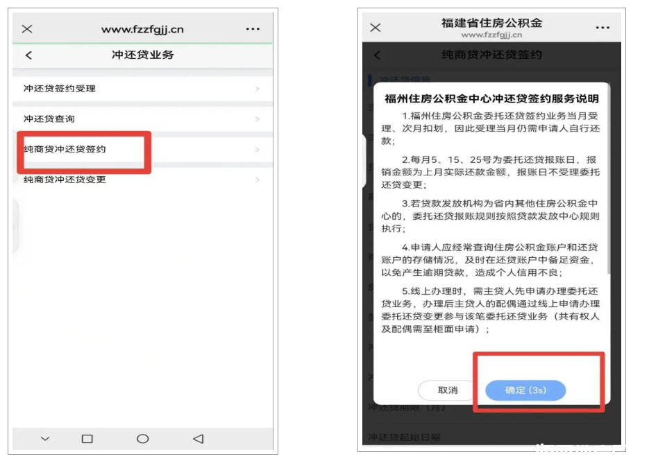 (1)繳存人當月簽約委托還貸后,次月起開始報賬。簽約當月仍需繳存人按時還款,報賬方式實行“一月三沖”,分別于次月5日、15日、25日進行報賬,報賬金額(不超過上月還款金額且不超過住房公積金賬戶余額)將自動轉入約定的還款卡。