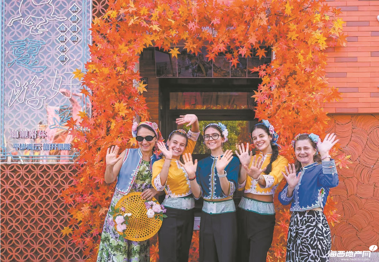 代表團成員身著惠安女服飾打卡 (融媒體記者陳英杰 攝)