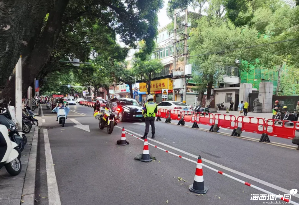 新華路華園至西街路口段,交警部門調(diào)整交通組織。