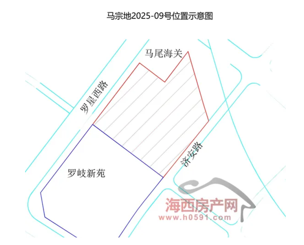 宗地編號馬宗地2025-09號,土地位置馬尾海關以南,青洲路、沈海高速以西,濟安路以北,羅星西路以東。