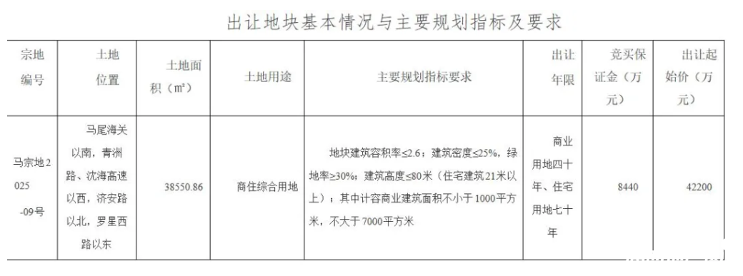 該地塊競買保證金8440萬元,出讓起始價42200萬元。海西房產網根據容積率2.6測算,地塊起始樓面價為4,210.22元/平米。