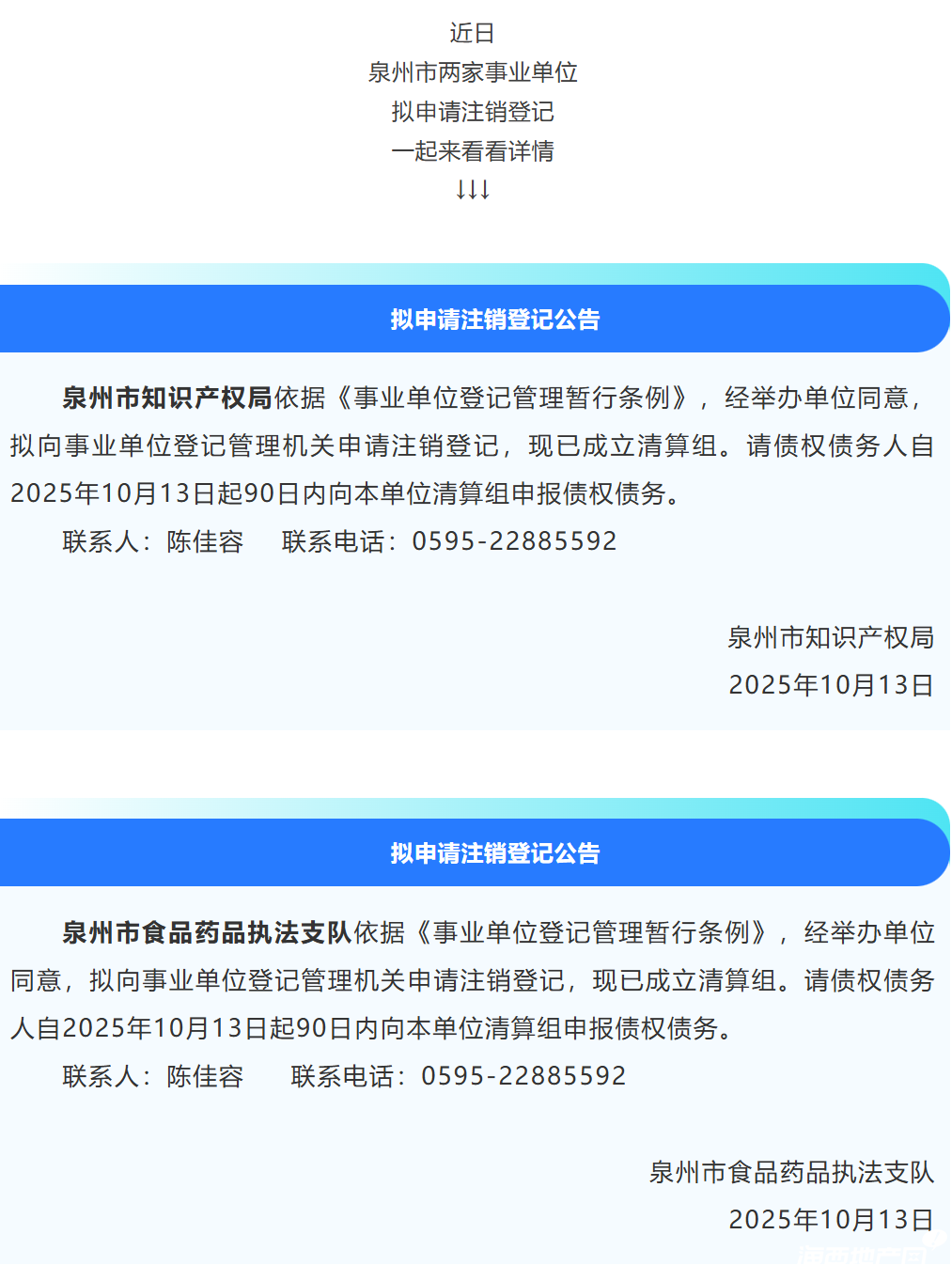 泉州2家事業單位擬申請注銷登記